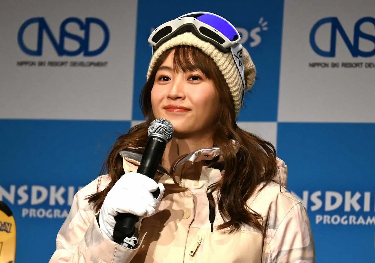 スキーウェアで登壇した夫妻。くすみカラーで色合いを合わせ、着こなしを互いに褒め合う場面もあった。