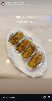 続く投稿で焼き上がったスイートポテトの写真を公開。「美味しかったぁ~ ご馳走様でした」とハートマーク付きでコメントした。