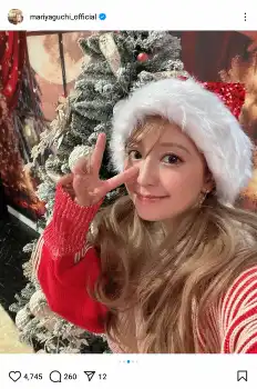 矢口は「ロン毛ウィッグのサンタ帽写真がストーリーズで好評だったのでこっちにも残しておきます テヘッ」と報告。金髪のロングヘアに“変身”した姿を公開した。