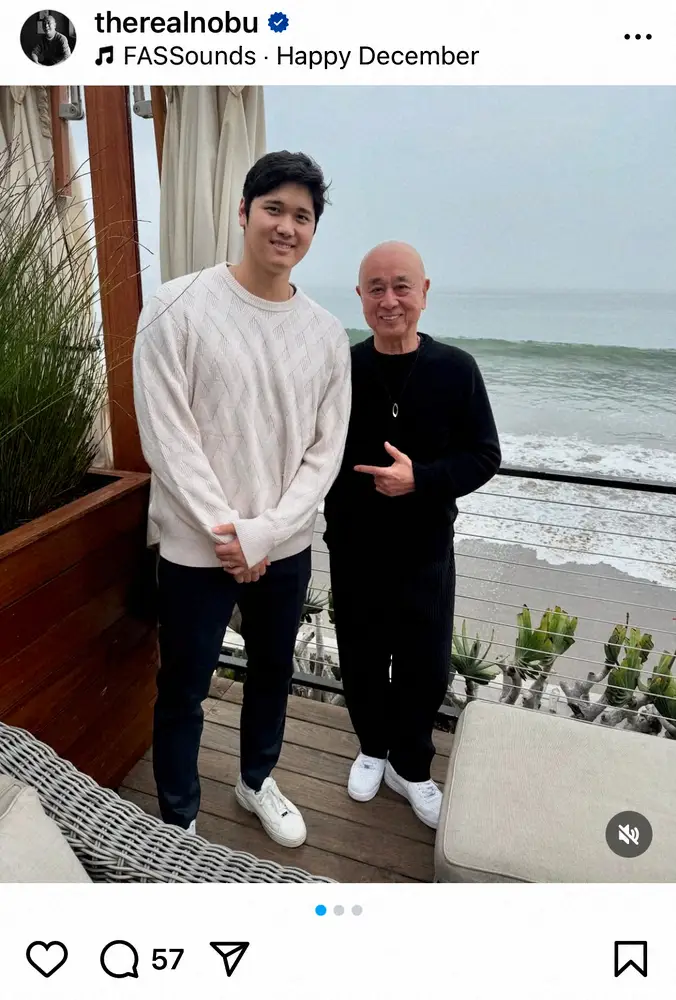 松久シェフは今月上旬にも大谷、山本由伸のワールドシリーズ制覇を祝う3ショットを公開。また、昨年12月には山本のドジャース入りが決まった際、大谷が自身のインスタグラムで松久氏が経営する日本食レストラン「Matsuhisa」を山本とともに訪れたことを報告している。