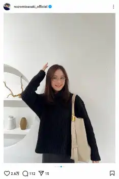 佐々木は「私服」と題し、「全身ブラックの日。このニットが気持ちよくて、他の色も凄く着ている」と報告。「眼鏡も合わせてみた」と、黒いニットとハイブランドのバッグを合わせたコーディネートを披露した。