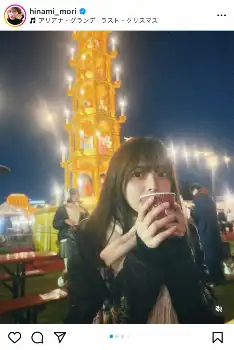 この日、森は「くりすますだね」と書き出すと、クリスマスマーケットでドリンクを味わうショットを投稿。