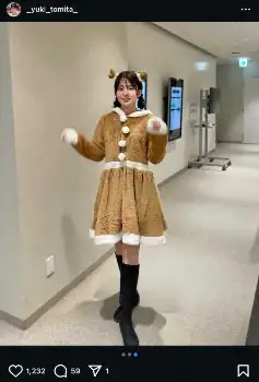 テレビ東京「ウイニング競馬」にレギュラー出演している同局の冨田有紀アナウンサー(26)が、24日までに自身のインスタグラムを更新。同局「おはスタ」出演時のトナカイコスプレ姿を投稿した。