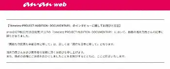 timelesz project公式ロゴ(https://timelesz-project.com/) 雑誌「anan」タイプロ候補生の発言巡り謝罪 アメリカ出身・浅井乃我「国… ギャラリーで見る この記事のフォト 2024年12月25日の画像一覧 もっと見る 2024年12月25日の画像をもっと見る