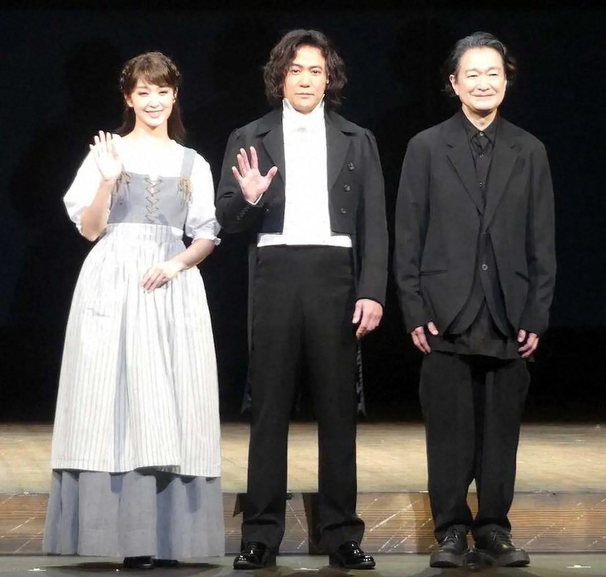 舞台「No.9―不滅の旋律―」の会見に出席した(左から)剛力彩芽、稲垣吾郎、演出の白井晃氏