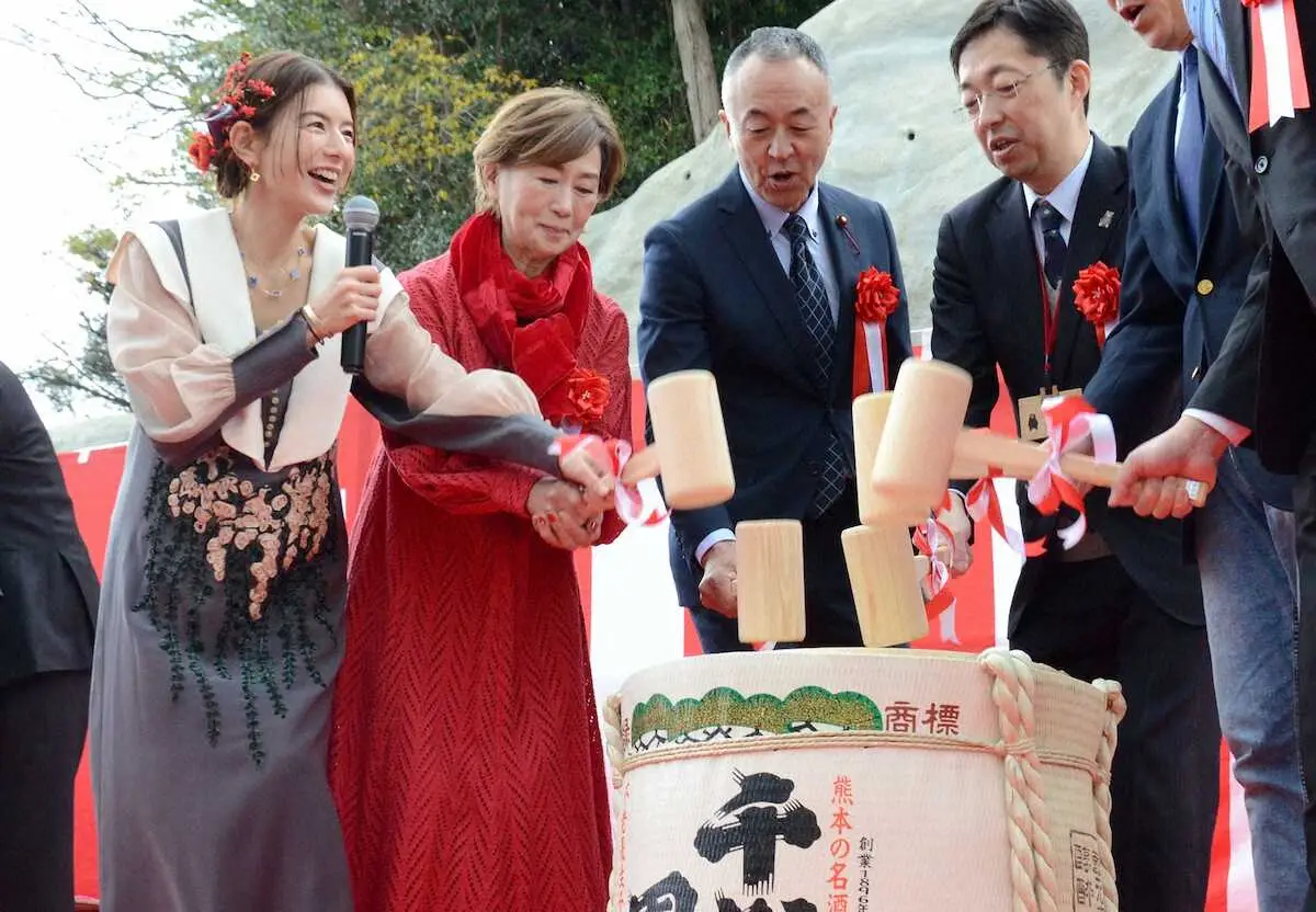 餅投げや鏡抜きで祝ったスザンヌは「地元や熊本県内外の方に人生の節目に訪れてもらえるような場所にしたい」と話した。2025年2月上旬に宿泊施設も開く。21日のオープニングイベントには、木村敬知事や大西一史熊本市長らも駆け付けた。