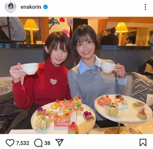 えなこ グラドルとXmasアフタヌーンティー2ショット公開に「仲良し姉妹」「最強かわいいコンビ」