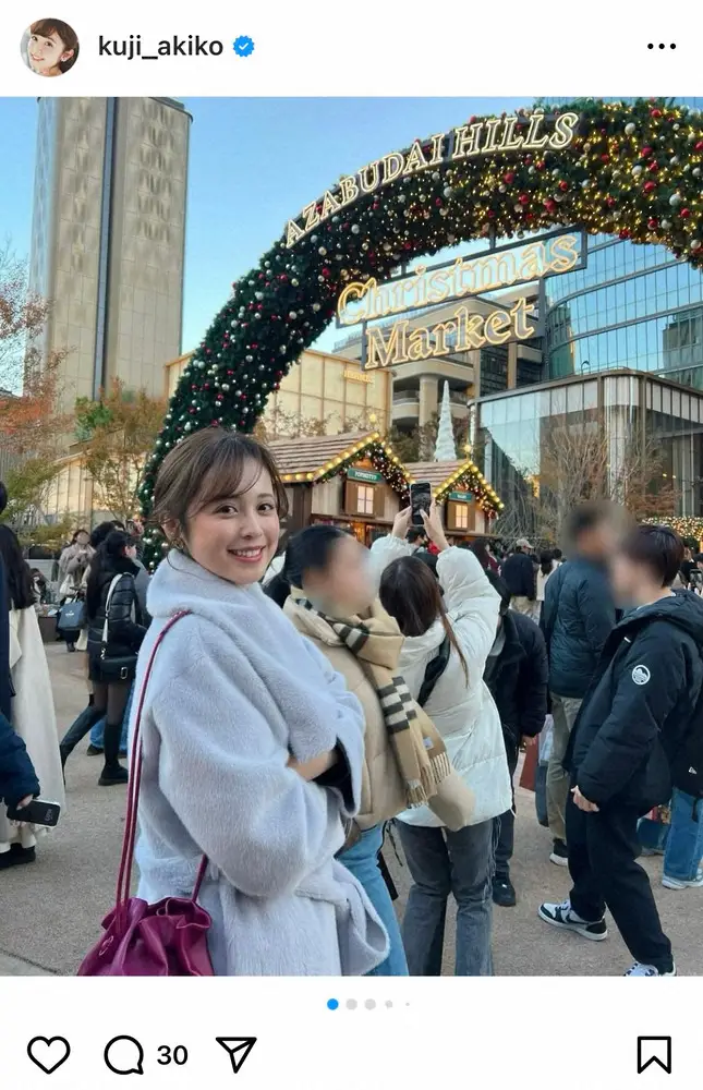 久慈暁子 麻布台ヒルズに神宮外苑…クリスマスマーケット満喫ショットに「久慈ちゃんとてもキレイ」の声