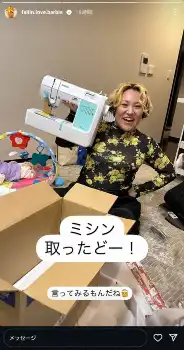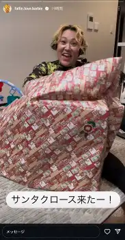 バービーはストーリーズで「サンタクロース来たー!」と、ラッピングされた大きな包みを開封する様子を動画で公開。「ミシン取ったどー!」と中身がミシンだったことを明かし、「言ってみるもんだね」と感激した。