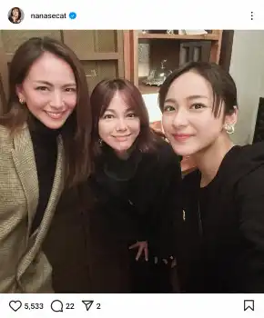 相川七瀬「お久しぶりの西平七瀬です」人気女優らとの“三姉妹ショット”に「美女が3人」「可愛い」の声