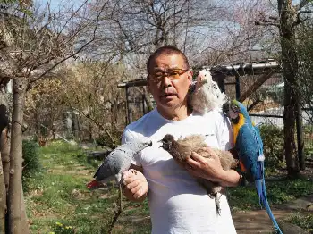 あとはニワトリが1羽、それからインコが5羽。これが可愛いのよ。みんな焼きもち焼きで、頭がいいです。ルリコンゴウインコは一緒に車で買い物に行って普段は10分くらいで戻るところを1時間くらい戻らなかった。そしたらお父さんがいなくなってしまったと思ったみたいで、ストレスから来る嘔吐(おうと)で車中汚れてしまいました。