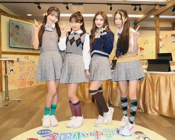 ≪ラッキーラッキー「ハッピーな気持ち」≫規定曲「こくご・さんすう・りか・恋愛!」を歌った女性9人組「ラッキーラッキー」が表彰プレゼンターを務めた。メンバーの上村梨々香(15)は「元気いっぱいに踊ってる姿を見てハッピーな気持ちになりました」と笑顔。深澤日彩(18)は「小中学生の皆さんに負けないようなダンスをお届けできるように頑張りたい」と意気込んだ。