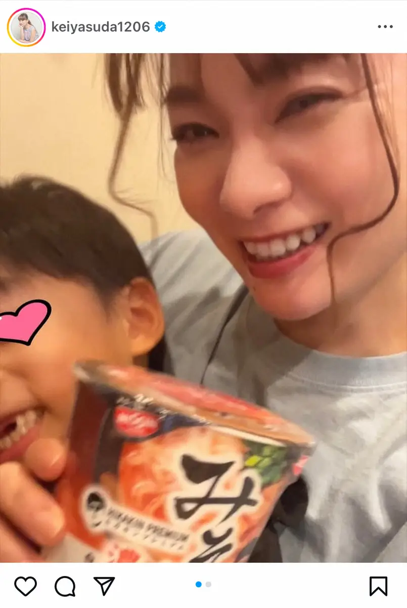 保田は「息子がず~っと食べたがっていた『みそきん』 あちこちで探していたけどなかなかGETできずにいたら なんと!夫がサプライズで持って帰ってきた」と書き出し、人気ユーチューバー・HIKAKIN(ヒカキン、35)がプロデュースし、大ヒットしたカップめん「みそきん」を手に笑顔の自撮りをアップ。