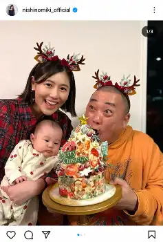 10月出産の西野未姫 家族3人の初クリスマス公開に反響「素敵なファミリー」「雑誌の1ページみたい」