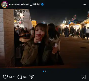 元乃木坂46のタレント・秋元真夏(31)が27日までに自身のインスタグラムを更新。クリスマスマーケットでの笑顔ショットを投稿した。