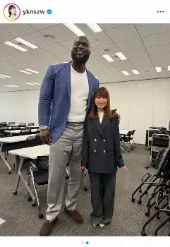 また「221cmのオモス選手と158cmの私」として、63センチ差のショットも投稿した。