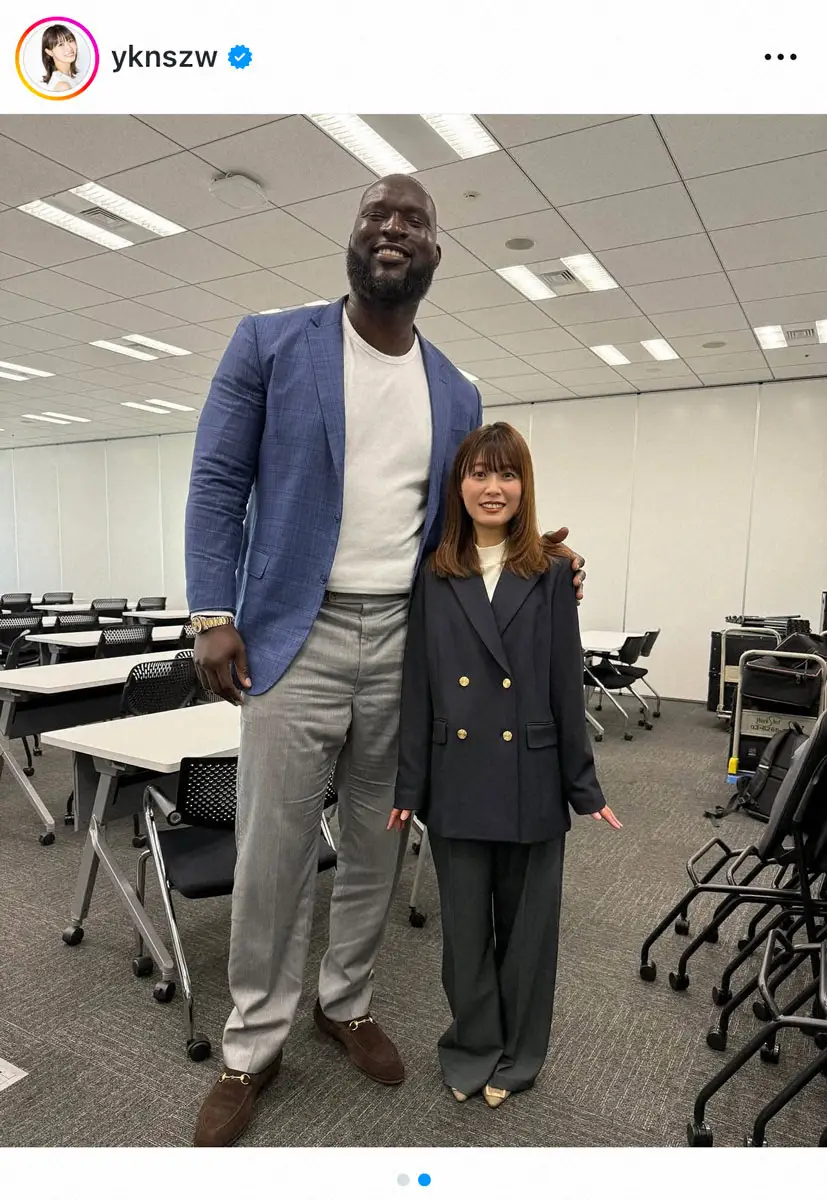 ABEMAの西澤由夏アナウンサー(31)が28日、自身のインスタグラムを更新。衝撃の身長差がわかるショットを披露した。