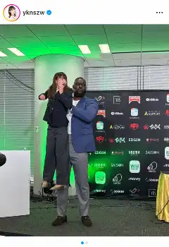 西澤アナは「今日の記者会見。司会をしていたら、急に宙に浮きました」と、プロレスラーのオモスに軽々と持ち上げられるショットを投稿。この写真に「この写真合成!?って聞かれるんですけどリアルです。笑」と伝えた。