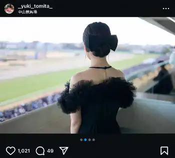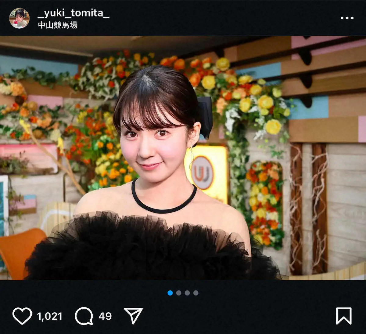 テレビ東京「ウイニング競馬」にレギュラー出演している同局の冨田有紀アナウンサー(26)が、28日までに自身のインスタグラムを更新。同番組で着用した肩出し黒ドレス姿を投稿した。