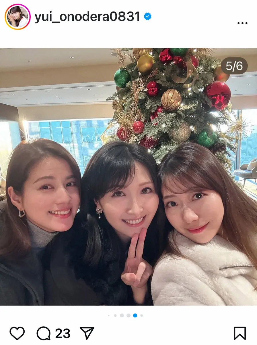 小野寺結衣アナウンサーの公式インスタグラム(@yui_onodera0831)から 33歳・人気フリーアナ フジ永島アナら「同い年トリオ」でのクリパS「今年… ギャラリーで見る この記事のフォト 2024年12月31日の画像一覧 もっと見る 2024年12月31日の画像をもっと見る