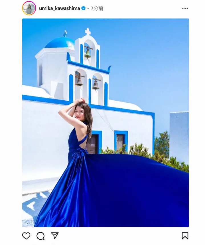 今年最後の投稿で青いロングドレスを着用したウエディングショットを公開。ファンからは「海ちゃんの幸せな報告も聞けて嬉しかったよ」などのコメントが寄せられた。