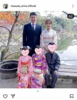 枡田絵理奈 広島・堂林翔太&1男2女と華やか着物&スーツ姿の家族ショット「よろしくお願い致します」