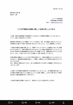 化粧品会社が謝罪、廃業を発表 代表取締役が「Number_i」めぐる不適切投稿 「心よりお詫び」