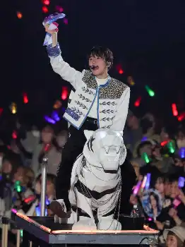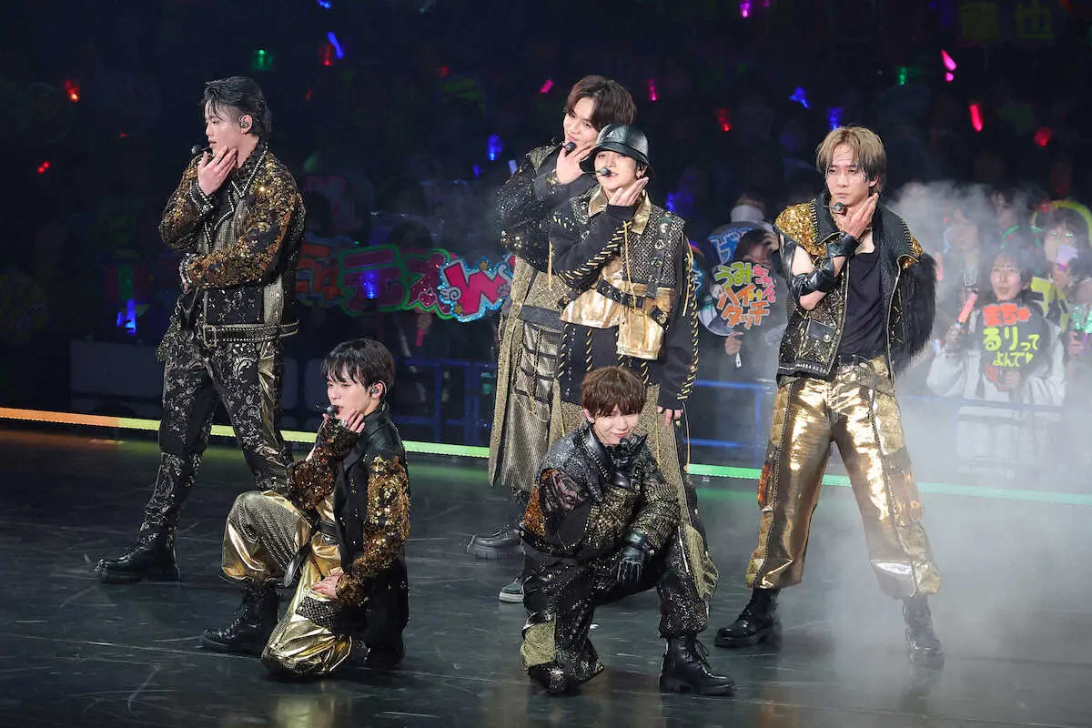 パフォーマンスを披露するTravis Japan(撮影・藤山 由理)