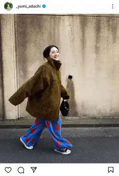安達は「ご挨拶遅くなりました 明けましておめでとうございます」とつづり、茶色のボアジャケットに、青と赤のビビッドなパンツ姿で歩く笑顔の写真を投稿。「今日も今日とて私は楽しそう エネルギーが体中に満ちている」とつづった。