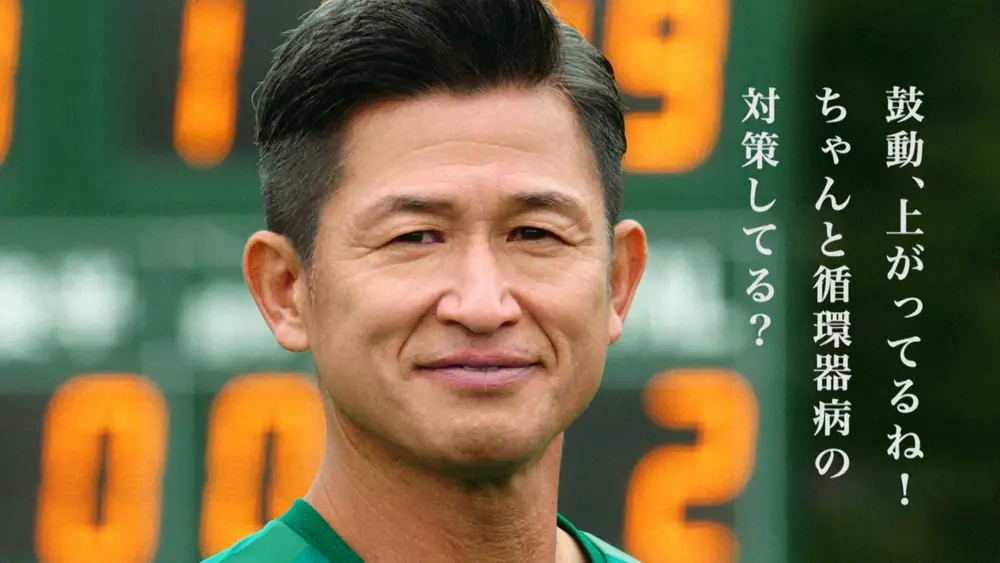 新CMは同社の保険商品「循環器病対策Pro」の発売に合わせて放映され、カズがPKの緊迫したシーンで「鼓動、上がってるね!ちゃんと循環器病の対策してる?」と呼びかけている。