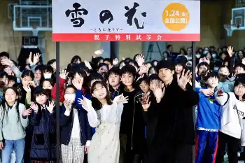 松坂桃李&芳根京子 小学校で時代劇の試写会 約250人生徒、保護者に「届ける事ができてうれしい」