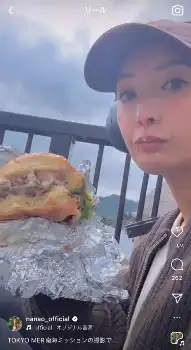 女優の菜々緒(36)が7日、自身のインスタグラムを更新。沖縄ロケで海を眺めながらハンバーガーを頬張る姿を公開した。
