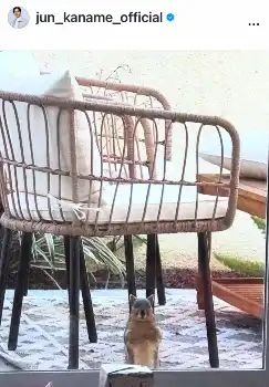 要は「急な来客」とつづり、リスの絵文字と投稿。椅子の下にちょこんと座る野生のリスの写真をアップした。