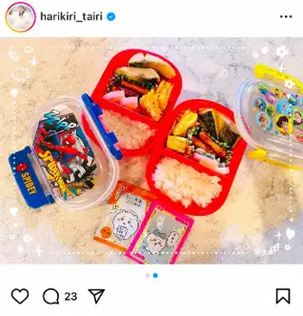 この投稿にフォロワーからは「美味しそう!。栄養満点」「カラフルなお弁当可愛い」「わかる…息子もお弁当にお魚入れるとお友達にくさーい!って言われるみたいです」「私も娘に魚は入れないでと言われました泣」「ママの朝は大変ですね 本当に尊敬します」などのコメントが寄せられている。