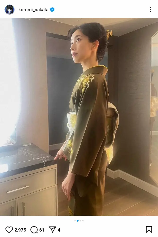 浅野忠信妻・中田クルミ「着付けは自分で」2万6千円の着物姿に「買い物上手がすぎる」「うっとり」の声