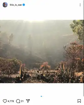 LA在住の一色紗英「自宅西側は避難区域」4年前の山火事でも「敷地まで火が届き焼け野原となった」