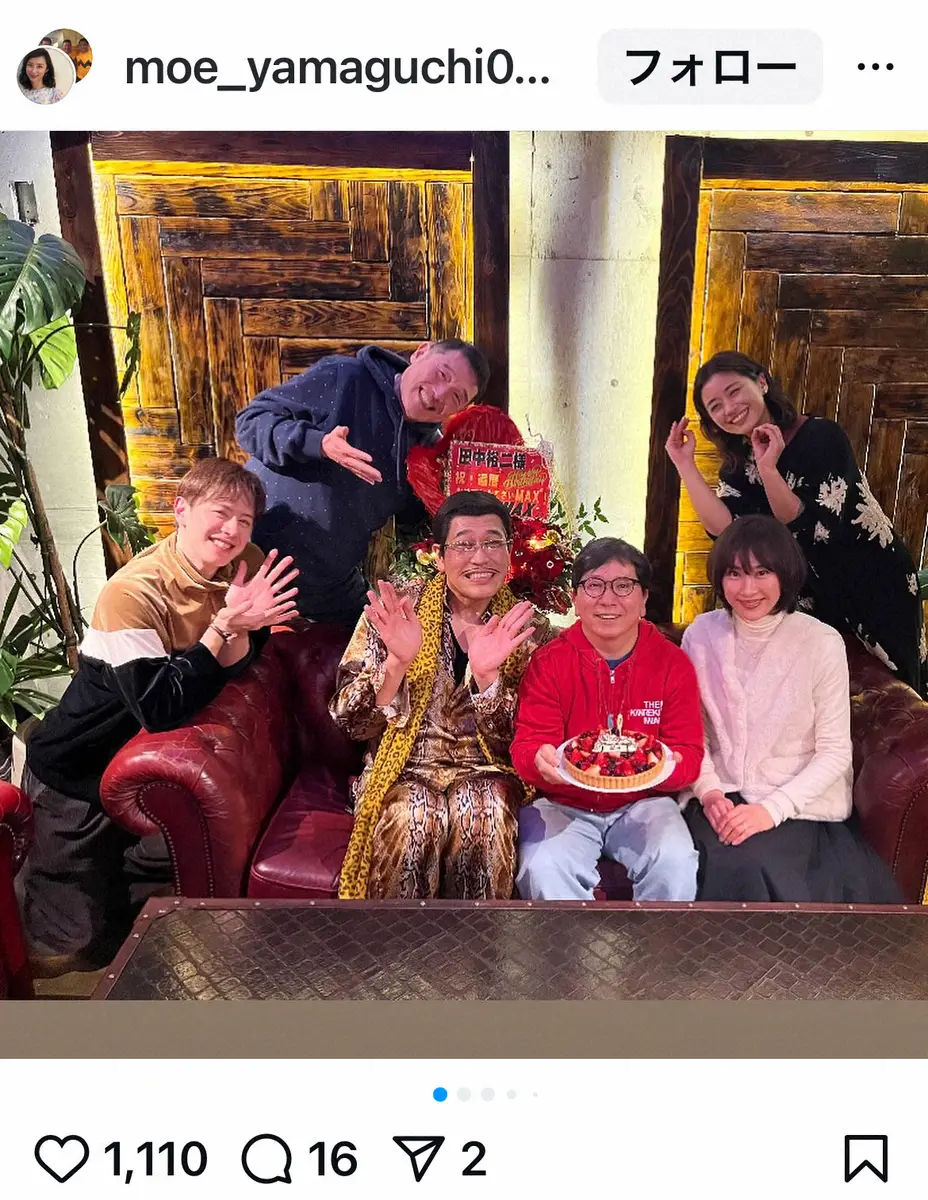 【画像・写真】山口もえ 夫・田中裕二の還暦祝い報告 「家族みたいに仲良し」豪華メンバー集合で「心よりおめでとう」