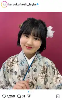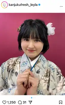 「本日遂に…!成人式の日を迎えることができました」と晴れ着姿を披露。「人生に1度の大切なイベント…どうしてかあんまり行く気が起きなかったけれど、父が昔からずっと言っていた『レイラの晴れ着姿を見るまでは死ねない』という言葉を思い出して、絶対に出ようと思いました」とつづった。