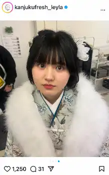 お笑いコンビ「完熟フレッシュ」の池田レイラ(19)が13日、自身のインスタグラムを更新。成人式を迎えたことを報告した。