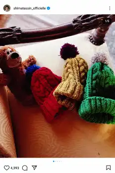 この日は「ずっとサボり続いてた編み物をようやくこの連休で仕上げて子供達にプレゼントしました」と報告。「頑張って編んだのに、編み目に手を突っ込んだり、ポンポンを引きちぎろうとしたりしていましたが、編んでいる姿を見せてあげると、こんなに大変なんだなぁとわかってくれたようです」と伝えた。