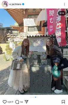 平野綾インスタグラム(@a_ya.hirano)から 平野綾「いつまでも大事な親友」中川翔子と初詣へ!仲良しSに「かわいい」… ギャラリーで見る この記事のフォト 2025年01月15日の画像一覧 もっと見る 2025年01月15日の画像をもっと見る