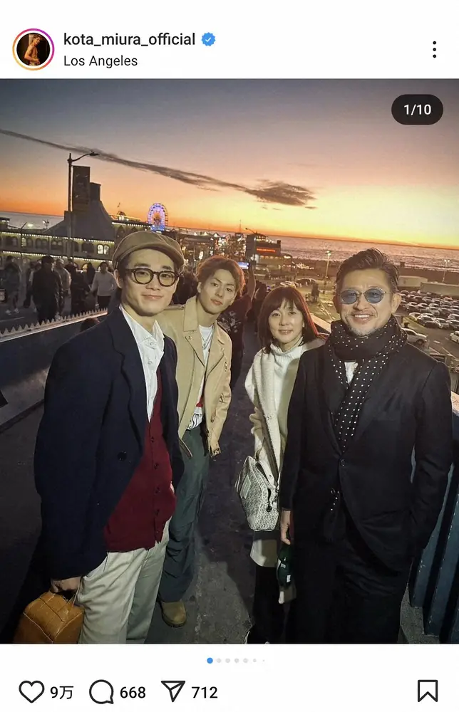 これまでの投稿で、ロサンゼルスに父のカズ、母でタレントの三浦りさ子、兄で俳優の三浦りょう太(りょうはけものへんに寮のうかんむりなし)と訪れた様子を披露していた孝太。