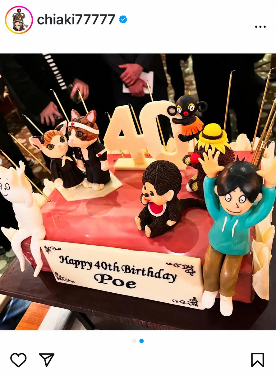 「ぽえ、40歳のお誕生日おめでとう」と古市氏の愛称とともに祝福。千秋は古市氏と親交が深いことでも知られており、「もう10年間、お祝いし続けています」と記した。
