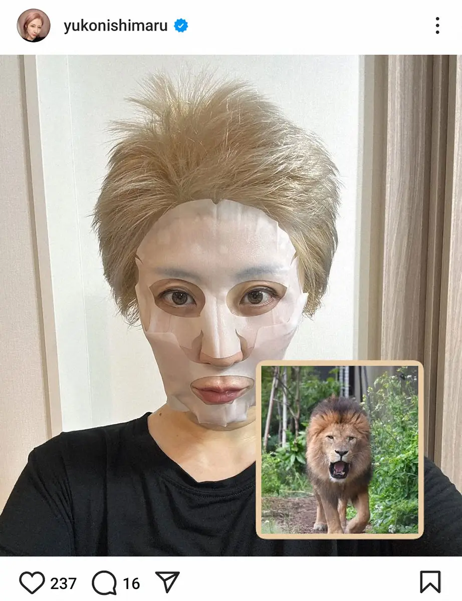 「発毛速報」と題して「ラストケモから7ヶ月。ツルツル坊主から一斉スタートした髪の毛は、ここまで育ちました」と勢いよく伸びた金髪姿で顔パックをしたショットを公開。「もともとが、剛毛、多毛の私としては、抗がん剤により少しは猫っ毛になることを期待していましたが、そんな期待はよそに見事なライオンヘアへと成長しております」とユーモアを交えてライオンの画像とともに報告した。