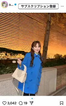 「仕事が緩いと普段子供の写真や家族の家の中の写真しか撮らなくて載せられるものがない」と思わぬ悩みも吐露。「今年買ったコート @muveil_official バッグも冬仕様に」とつづった。