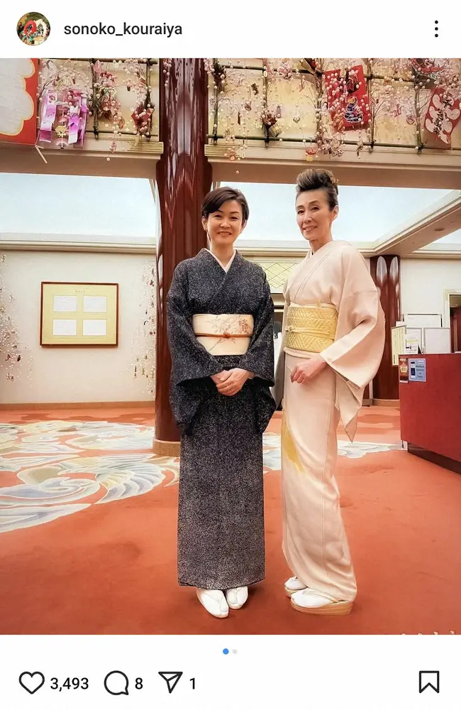 藤間さんの投稿に、フォロワーからは「素敵なツーショットですね」「わあ、お二人ともお変わりなくお奇麗でお元気そう!」「お二人ともお奇麗です」「華やかさと気品に溢れた御二方 見とれてしまいます エレガントな着物姿はとても憧れの装いです」「おふたり様美しいです」「美女お二人」といった反響が寄せられている。
