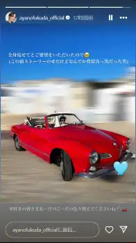 福田は、ストーリーズで「ひっさびさのマニュアル運転でこんな顔になって隣の(夫)ビビってた笑」とつづり、険しい表情でオープンカーを運転する様子をアップ。