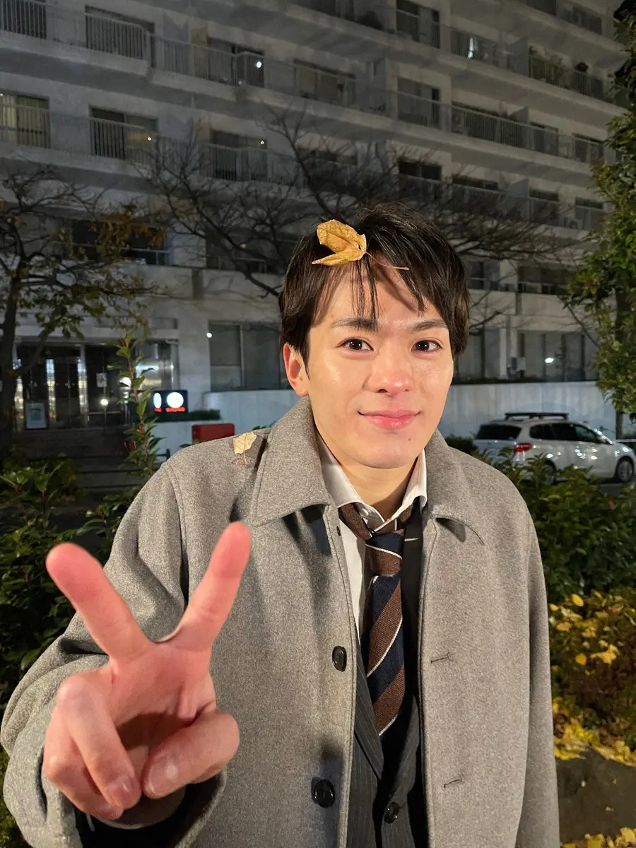 また、第1話のとある場面、外で落ち葉をたくさん降らせる撮影がありました。その日の気温は5度。夜の撮影で、本当に体が芯から冷えてしまうような寒さだったのですが…カットがかかっても、しばらく葉っぱが髪についており、それを曽根ちゃん役の片山さんにいじられると、ニカッと笑顔でピースサイン。場の空気が一気に和みました。