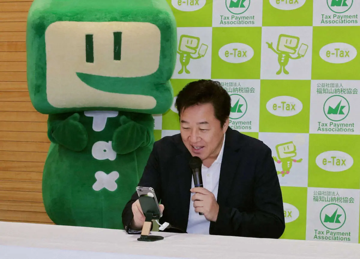 2024年分の所得税の確定申告が2月17日から始まるのを前に、日本バレーボール協会の川合俊一会長(61)が18日、京都府福知山市でスマートフォンを使ったオンライン申告を体験し「試合前のアップより簡単」とPRした。