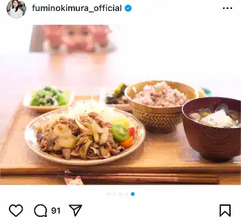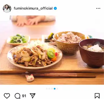 日々の手料理を自身のインスタグラムで披露している木村。この日も「今日のごはんでした」と書き出すと、「ナス入りしょうが焼き、キャベ千サラダ、トマト、小松菜としらすのおひたし、わかめとタコの酢のもの、煮かぼちゃの鶏そぼろあん掛け、シジミのおみそ汁、雑穀米ごはん」と品数たっぷりのメニューを紹介した。